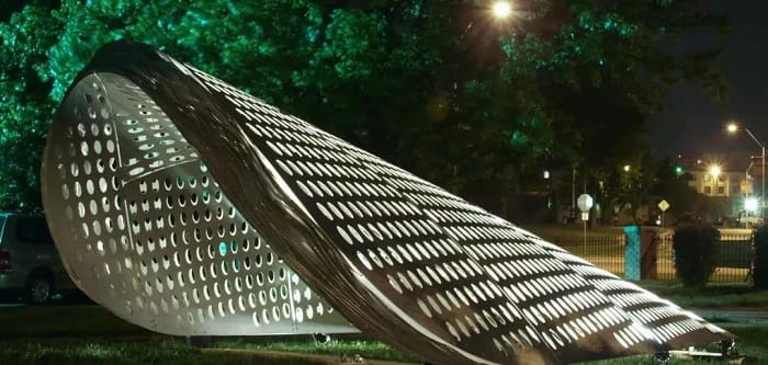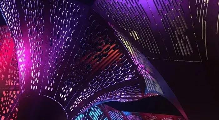穿孔板還可以為雕塑裝置等帶來不俗的表現(xiàn),與燈光,光線,水霧等結(jié)合絕對會給你帶來前所未有的視覺感受,仿佛打開了另一扇空間的門。