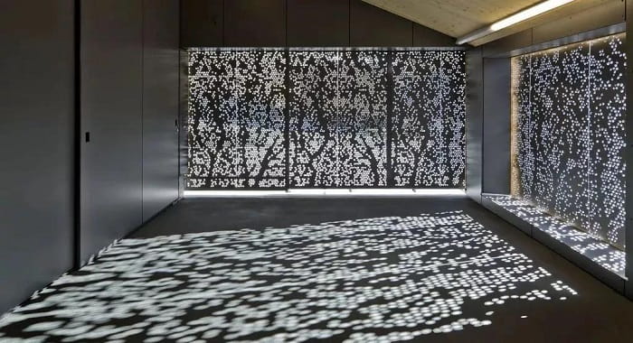 穿孔板特殊的效果通過圖案,光線的交流打破了室內(nèi)外的界限,讓細(xì)節(jié)之處耐人尋味。墻面,樓體,頂面都可以運用,你不妨試試。