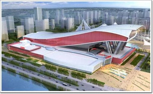 淮南奧林匹克公園位于安徽省淮南市山南新區(qū)城市中心區(qū)南部,其中有一座造型別致的賓館,整個(gè)建筑外形猶如一座巨型“乒乓球拍”,高150m,上方的拍柄部分是觀光層,中部扁寬形狀的拍身用作賓館客房,而下部的球體則被建成會(huì)議中心。這座“乒乓球拍”賓館由中國(guó)著名體育建筑專家梅季魁教授設(shè)計(jì),預(yù)計(jì)投資3億元。此外,整個(gè)奧林匹克公園還有“橄欖球”主體場(chǎng)館、“籃球”體育場(chǎng)館、“排球”游泳館及“足球”全民健身館等其他體育建筑。