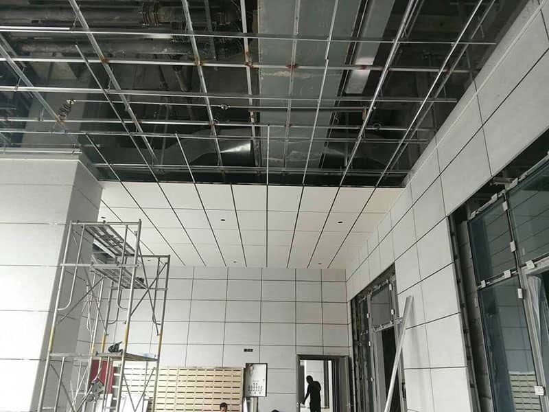 ■ 四面均衡受力、平整度高:由于每塊板四條邊都是搭在龍骨上面的,不會(huì)因?yàn)闀r(shí)長短而出現(xiàn)下跌現(xiàn)象,從而保證了方板鋁天花整體的持久平整、穩(wěn)定;