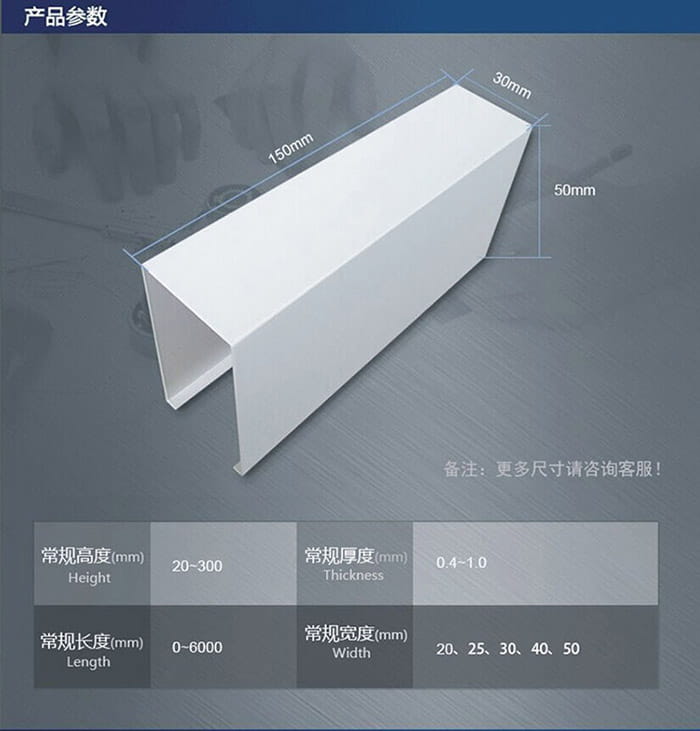 方通底寬: 一般為25-150mm,方通高度30-200mm
