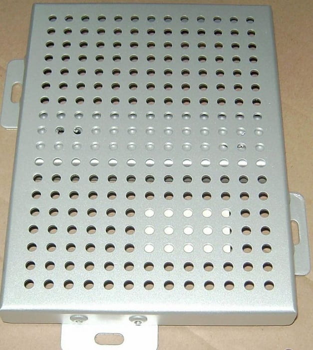 1、鋁單板主要選用1100系列鋁合金板材經(jīng)過折彎成型、焊接、背面加槽型加強(qiáng)肋,四周鉚接角碼組成。 2、表面涂層:室外用材一般選用氟碳涂料,室內(nèi)用材可選擇聚酯涂料和粉末涂料。 3、戶外用鋁單板厚度一般選擇2.5mm、3mm;低層和裙樓部分可選擇2.0mm厚度:室內(nèi)墻面與吊頂用時(shí)可選擇最薄1.0mm或1.5mm;鋁單板的外形尺寸一般長度可由客戶任意選擇,展開后寬度一般不超過1800mm。