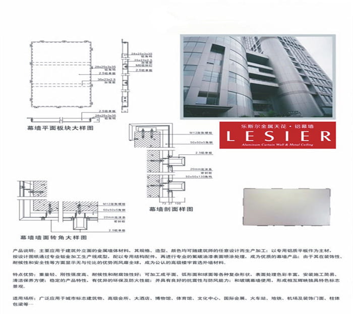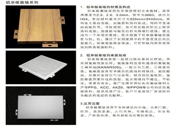 3、鋁單板常規(guī)尺寸選擇:鋁單板的外形尺寸一般長度可由客戶任意選擇,展開后寬度一般不超過1800mm。