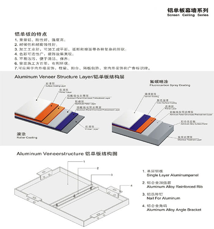 鋁單板輕量化,剛性好、強(qiáng)度高、不燃燒性、防火性佳、加工工藝性好、色彩可選性廣、裝飾效果極佳、易于回收、利于環(huán)保。