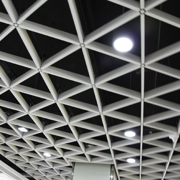 鋁格柵新型吊頂材料之一,安裝簡單快捷,只需把框架安裝好,直接吊在頂上即可,空調(diào)、消防燈具等可安裝在格柵上面,不影響燈光效果的同時,還能使光線均勻分布,適用于大型商場、超市等開放式場合。